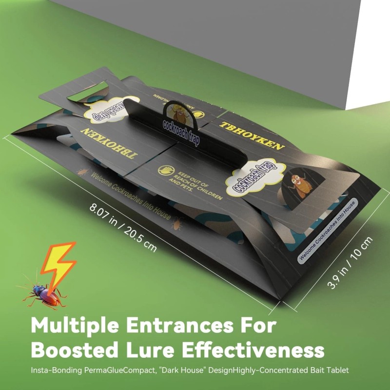 - Efficient cockroach bait traps with multiple entry points for improved accessibility and a greater capture rate. A safe trap for families to use against cockroaches.