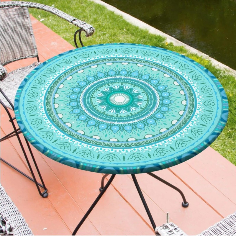 Round Tablecloth Fitted Elastic Table Cover Waterproof Table Cloth for Dinner, Party, Picnic,Camping, Round Table Cover for Indoor Outdoor,Blue,M 45"-56"