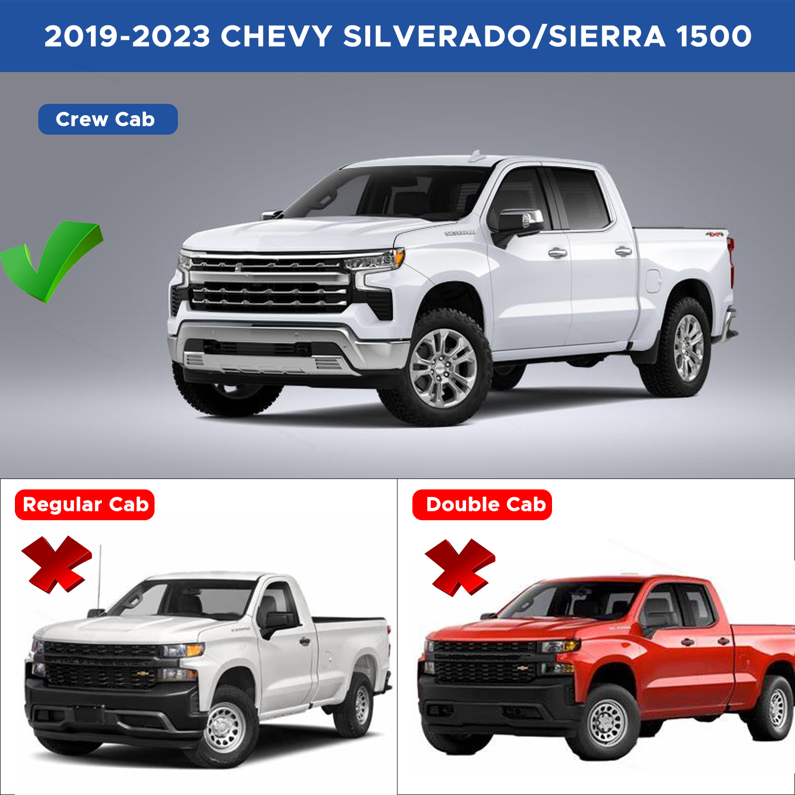 - Fitment 1: For 2019-2024 Silverado/Sierra 1500 Crew Cab