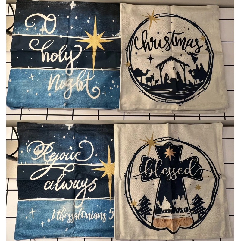 Unbranded Set of 4 Christmas Throw Pillow Covers 17.5x17.5Inch Blue White New