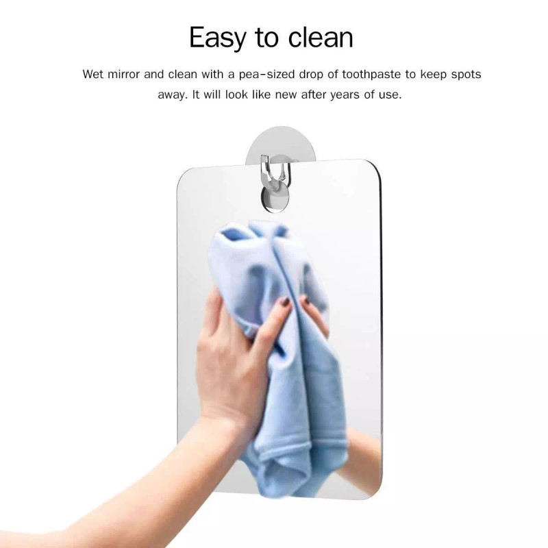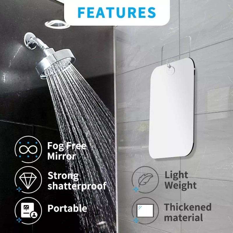【Package & Specification】 1 pcs mirrors and 1pcs adhesive hook in a package, approximate size: 5.1x6.7 inch,0.118inch thickness.the shower mirror makes your shower routine effortless,from shaving to removing makeup to brushing your teeth