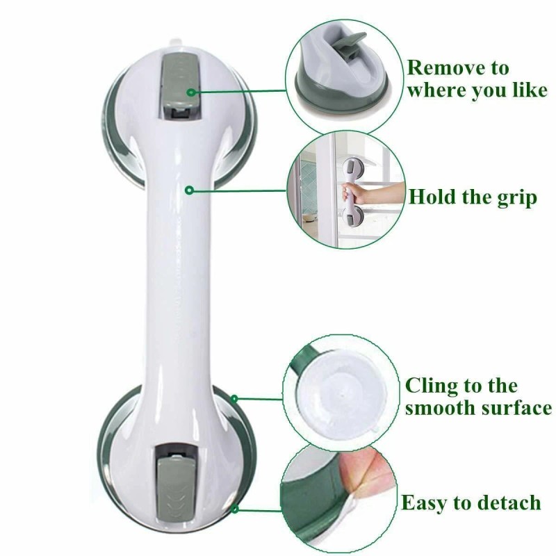 Safety Shower Handle Introuductions: It can be very dangerous when the shower or bathtub is wet. Getting in and out can be very slippery, especially for children, elderly, and the disabled. Our shower handle grab bar will prevent accidents and keep you assured with safety. Our updated suction cups have a stronger suction power and will not fall off over time! The grab bar is sturdy and comfortable. You do not need to worry if your hands are wet as it has an anti-slip feature, thanks to the ribbed grip handles. Providing safety and security in slippery locations helps prevent unfortunate accidents. Easy to set up without any tools. No drilling is required! It can easily be installed or removed, when you want and where you want. When installing, simply wet the suction cups for a sturdier install and lock the two tabs down to secure it. Flipping the two tabs back up helps for a easy removal. It will not damage or leave any residue on the surface. It is easily portable so take it with you everywhere! Features: 1.It will give you steady confidence in a slippery area. Its strong suction cup design works on non-porous flat surface even on tile, glass and acrylics 2. Sturdy and secure. Made of plastic and ribbed-grip handles. Thanks to the handle's underside feature molded fingers your hands won't slip even when wet providing safety and security in bathroom, tub, shower and toilet handrail 3. Portable. The balance assist bar handle is easy to install and remove, take it with you everywhere you need, just push down the locking latches to secure or flip them up to release 4. Non-slip grip. Perfect for the injured, elderly and toddlers as well as for everyone that need an extra support in slippery areas. It will stick firmly right where you place it. The grab bar will not harm any surface when install properly Specifications: 1. Material: Plastic 2. Color: Green & White 3. Dimensions: 11.42" x 3.54" x 2.95" 5. Weight: 12.7oz / 360g 6. Weight Capacity: 300 lbs / 136kg Package Includes:1 x Safety Shower Handle |
