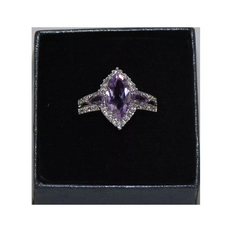 Unbranded Size 10 Handmade Genuine 2.50ctw Amethyst & CZ Around Silver Ring