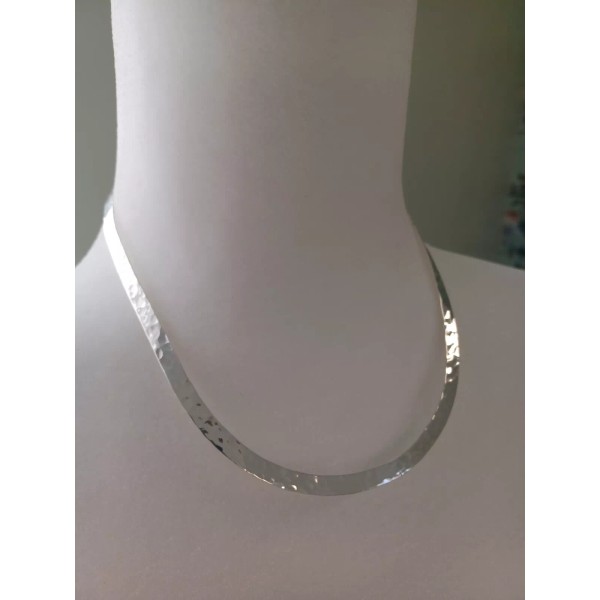 Unbranded Sterling Silver 925-5mm Hammered U/Open Back Choker/Necklac