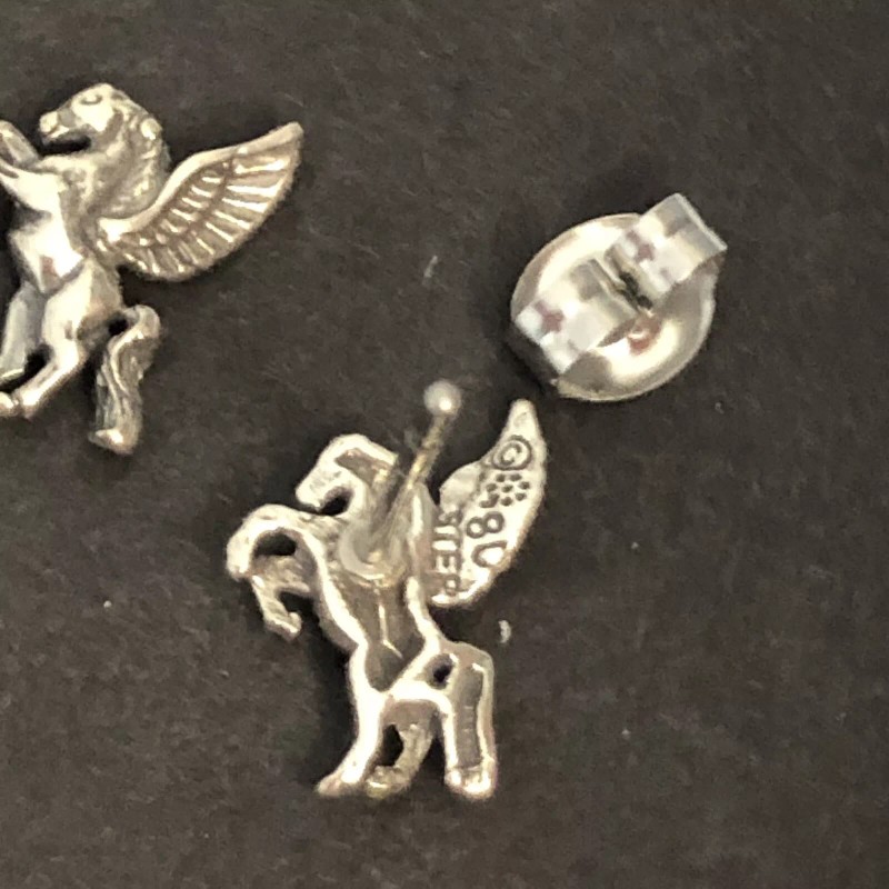 Unbranded Sterling Silver 925 Pegasus Tiny Stud Earrings USA Made Surgical Steel Post