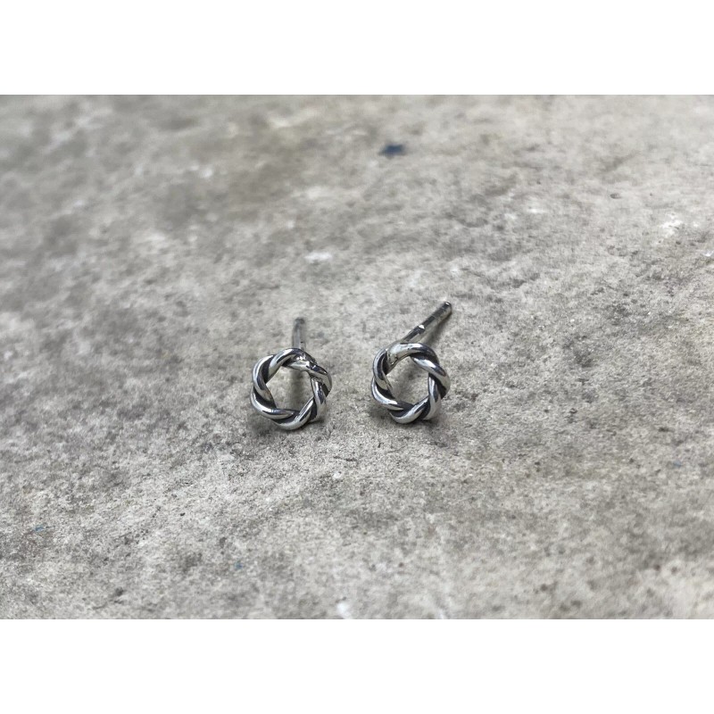 Small sterling silver twisted circle stud earrings, with sterling silver push backs. The earrings measure 6 mm.