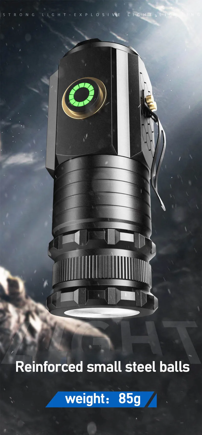 Strong light - Medium light - Weak light - Double click to enter TURBO Modes-Long press SOS