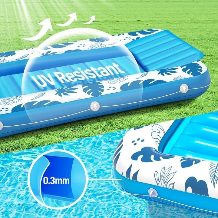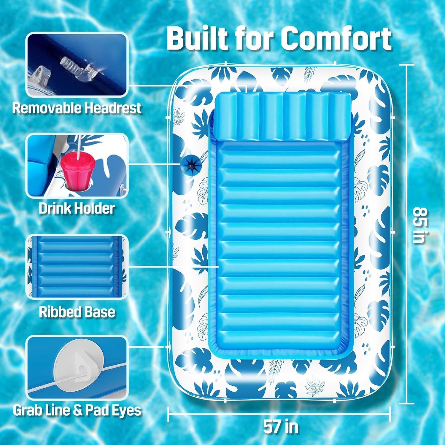 Unbranded Swimming Inflatable Tanning Pool Float Adult 4-In-1 Lounge w/Pillow+Cup Holder