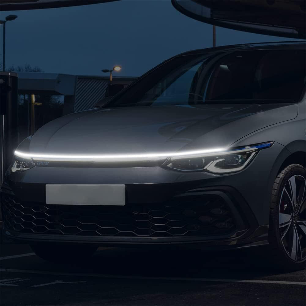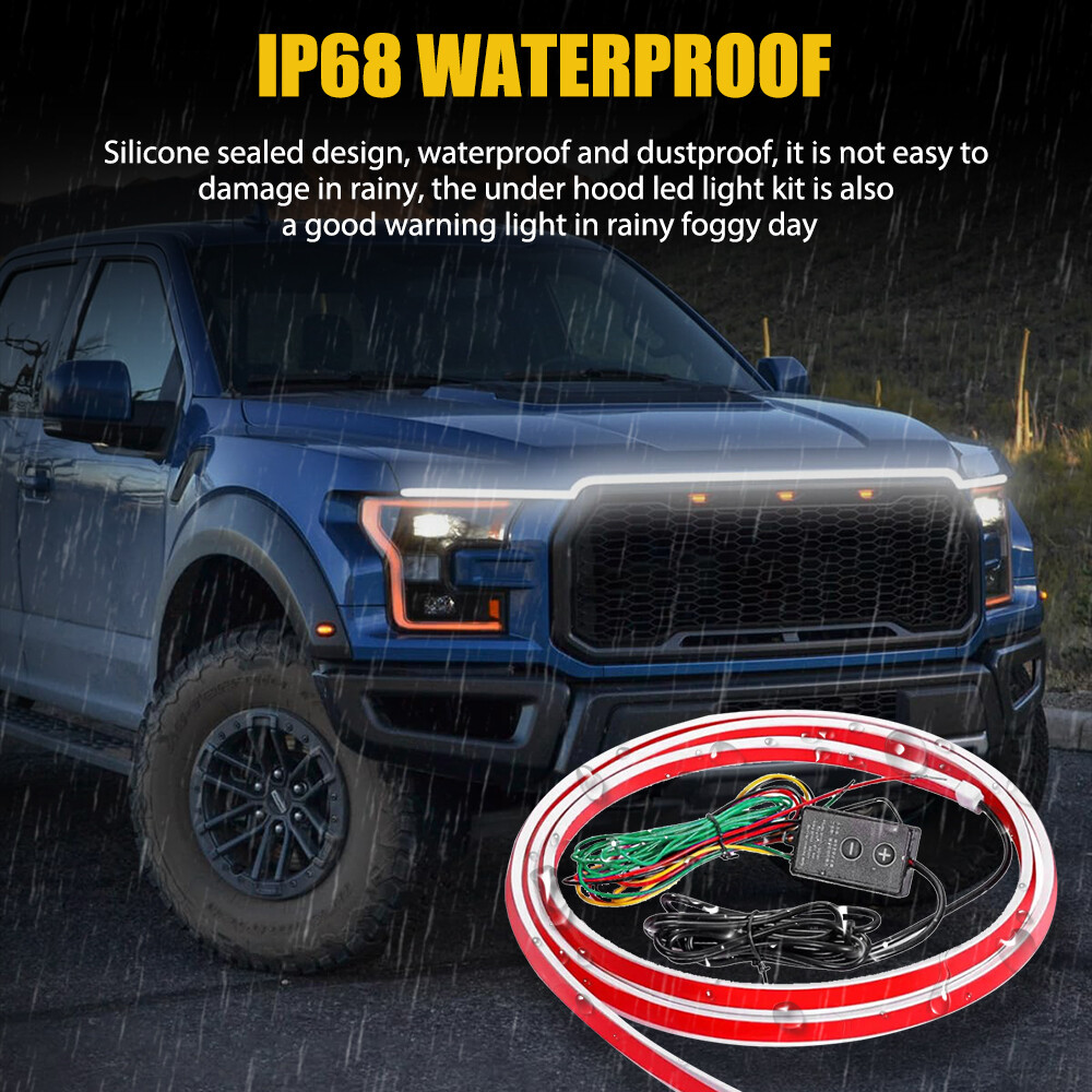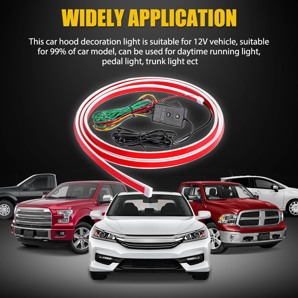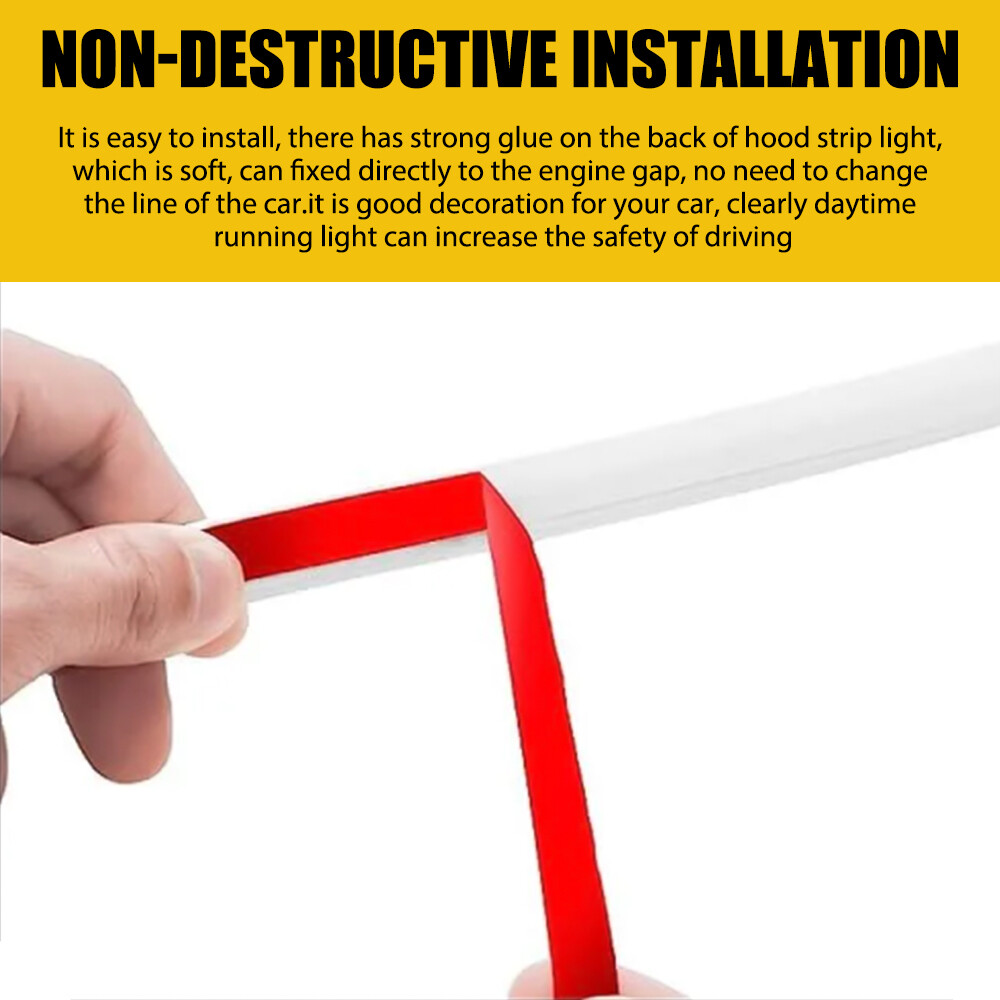 The strong glue on the back of hood strip light can be fixed directly to the engine gap, no need to change the line of the car.