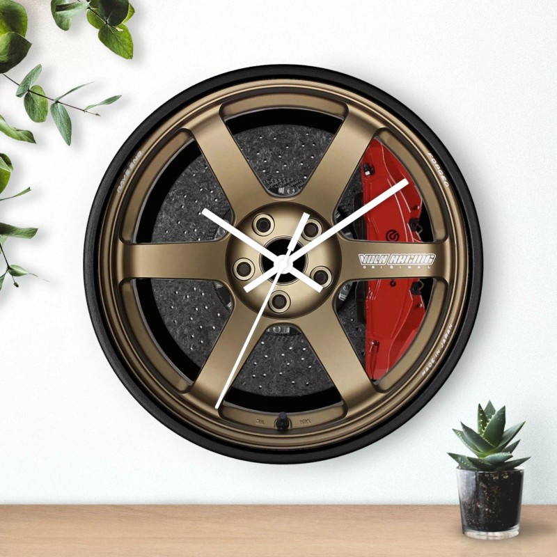Unbranded TE37 Rays Wheels/W Brembo Wall Clock, Volk Racing Garage Wall Clock, Volk Rays - Black, 10"
