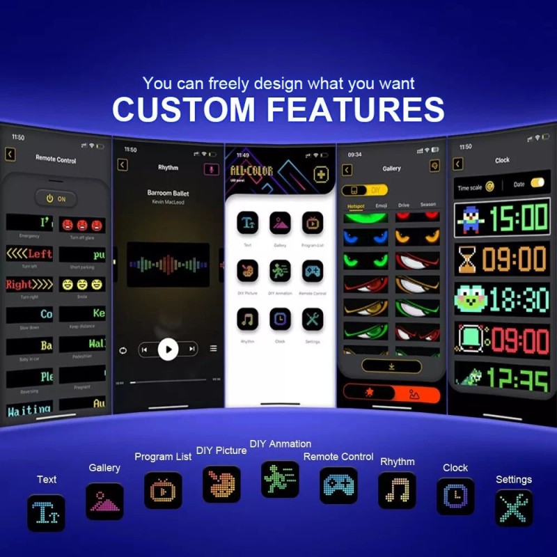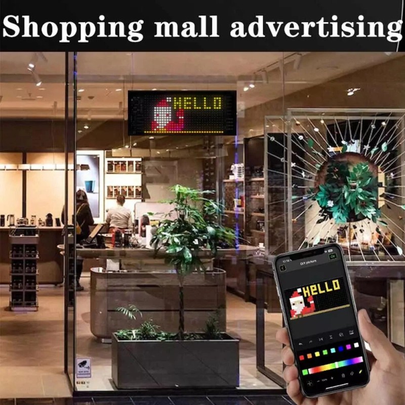 Suitable for various scenarios: DIY car dynamic programmable flexible LED display can be used for bars, restaurants, shops, cars, street vendors, parties, concerts, wedding decorations, etc.
