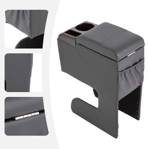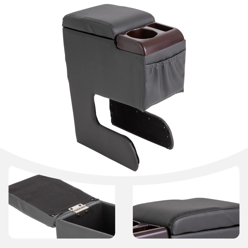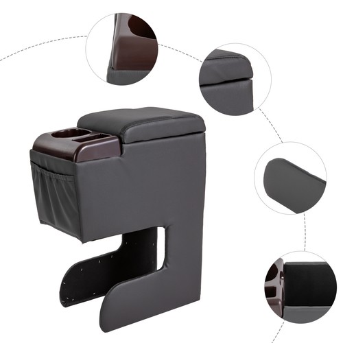 Unbranded Universal Car Armrest Storage Box PU Leather Arm Rest Center Console Black