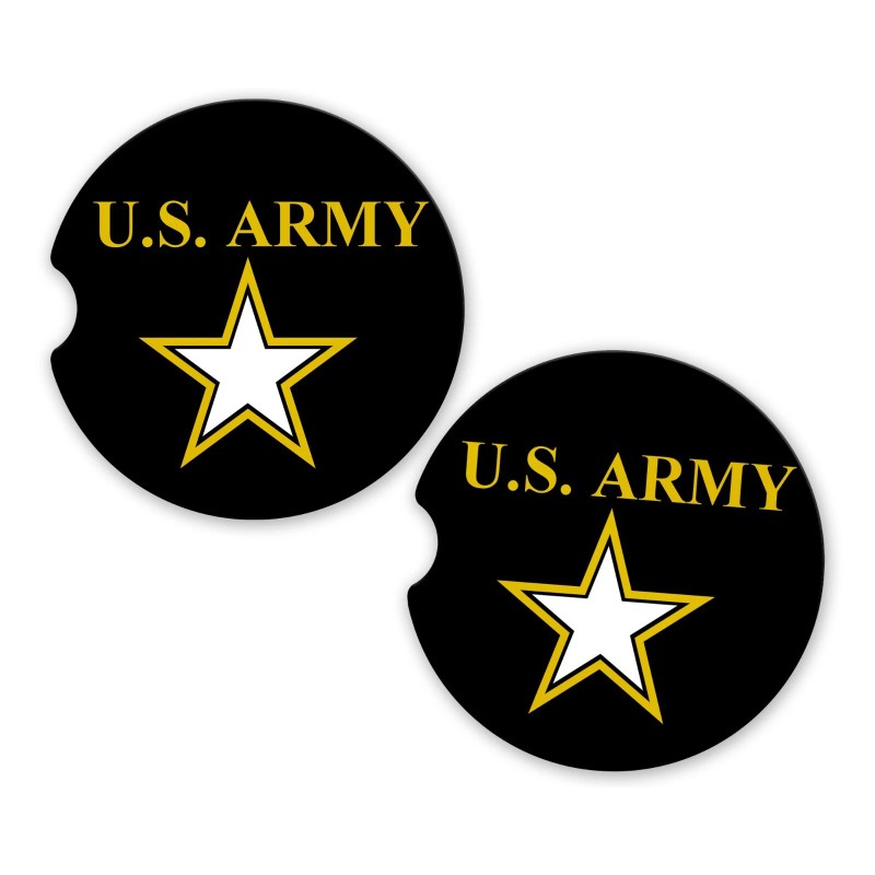 Unbranded US Army Military Car Coaster Set of 2 Ceramic Sandstone Cup Holder