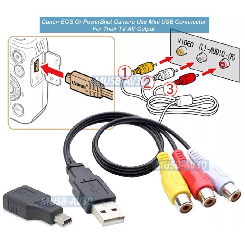 This kit includes a USB female to mini USB male adapter and a USB male to 3 RCA AV adapter cable as AV input or output for your video devices.