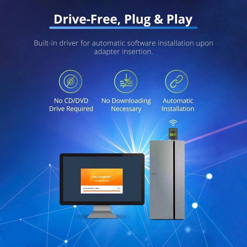 - 【Driver-Free Installation】: This USB WiFi adapter offers plug-and-play connectivity, eliminating driver installation hassles for most systems.