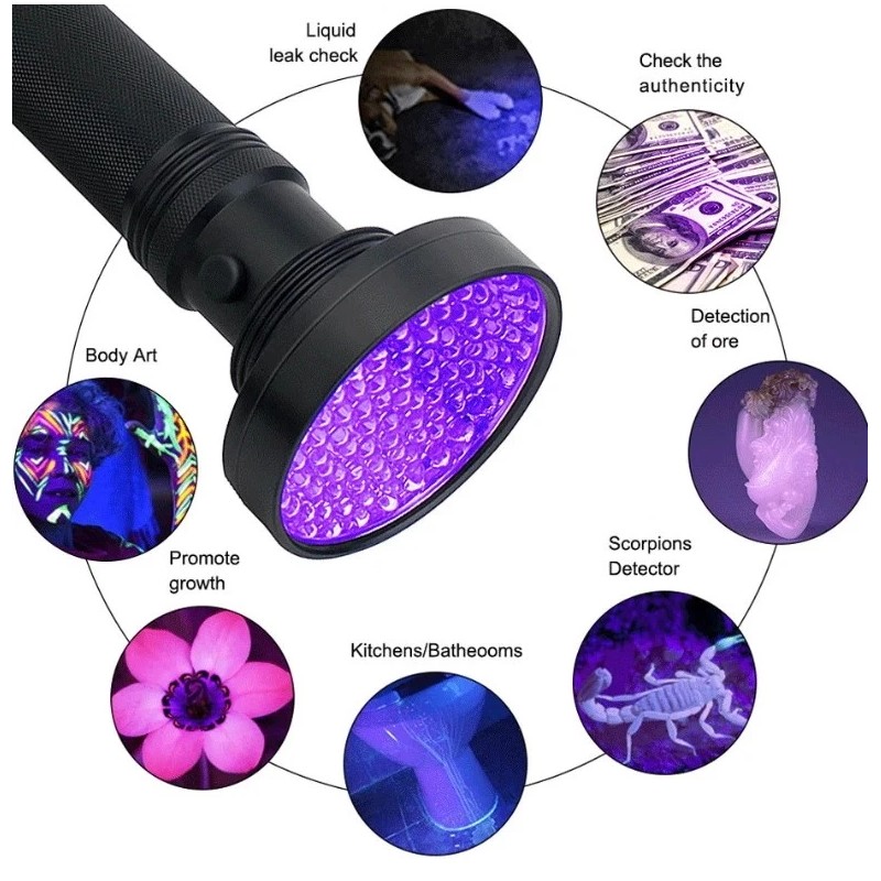 UV Ultraviolet Light 100 LED Flashlight BlackLight 395nM Inspection Lamp Torch