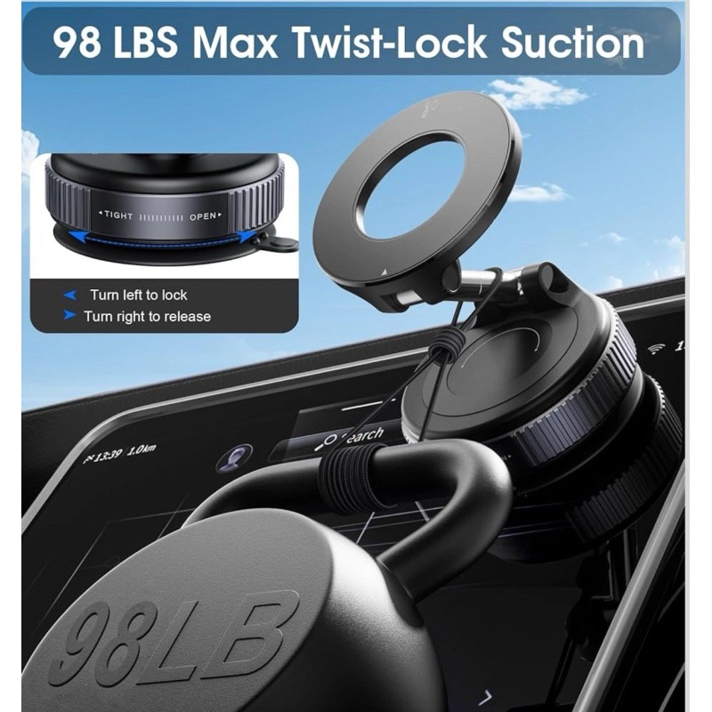 Unmatched Magnetic Grip for Safe Driving: Upgraded with 24 N52 magnets in a dual-ring layout for ultra-strong, stable hold—even on bumpy roads. No signal interference. Designed for MagSafe iPhones and cases; includes magnetic rings for wider phone compatibility