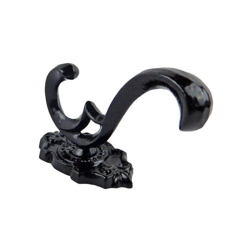 Unbranded Victorian Fleur De Lis Cast Iron Double Wall Hook Towel Coat Hanger Gloss Black