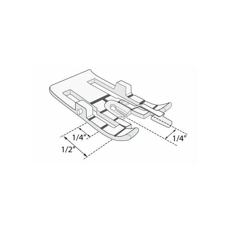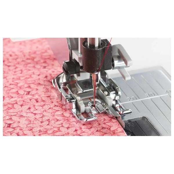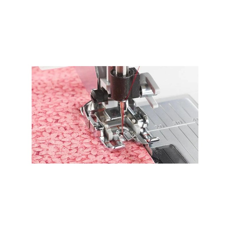 Use the Changeable ¼” Guide Foot for straight stitch and hand look quilt stitch. The guide will help you keep ¼” (6mm) distance.