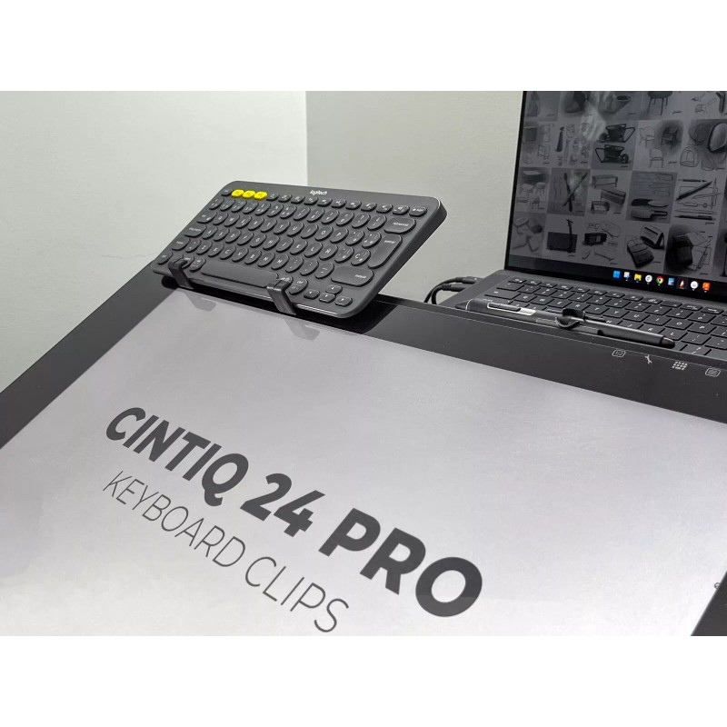 Theses hooks are custom designed to fit the contours of your Wacom Cintiq 24 PRO. They fit several types of keyboards and can be easy removed when not in use.