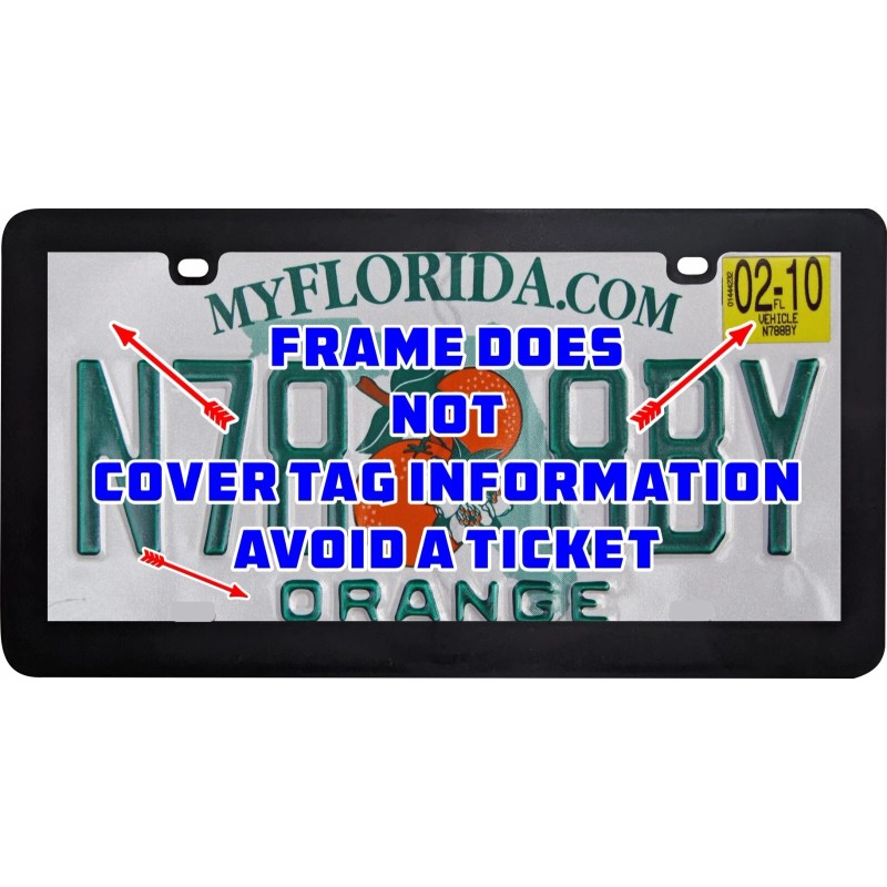 Custom and personalized license plate frame send note with top and bottom lettering.