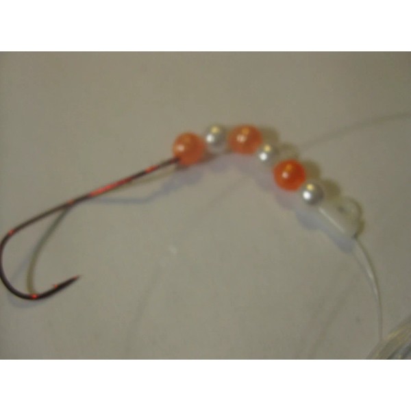 You are buying a slow death quick change rig. All rigs are made with 10lb. monofilament line and are approx. 48 in. long. They are all made with a #2 slow death hook a quick change clevis and a barrel swivel to help prevent line twist. Orange and White beads Just add your own spinner blade. I make them with 12 different bead colors.