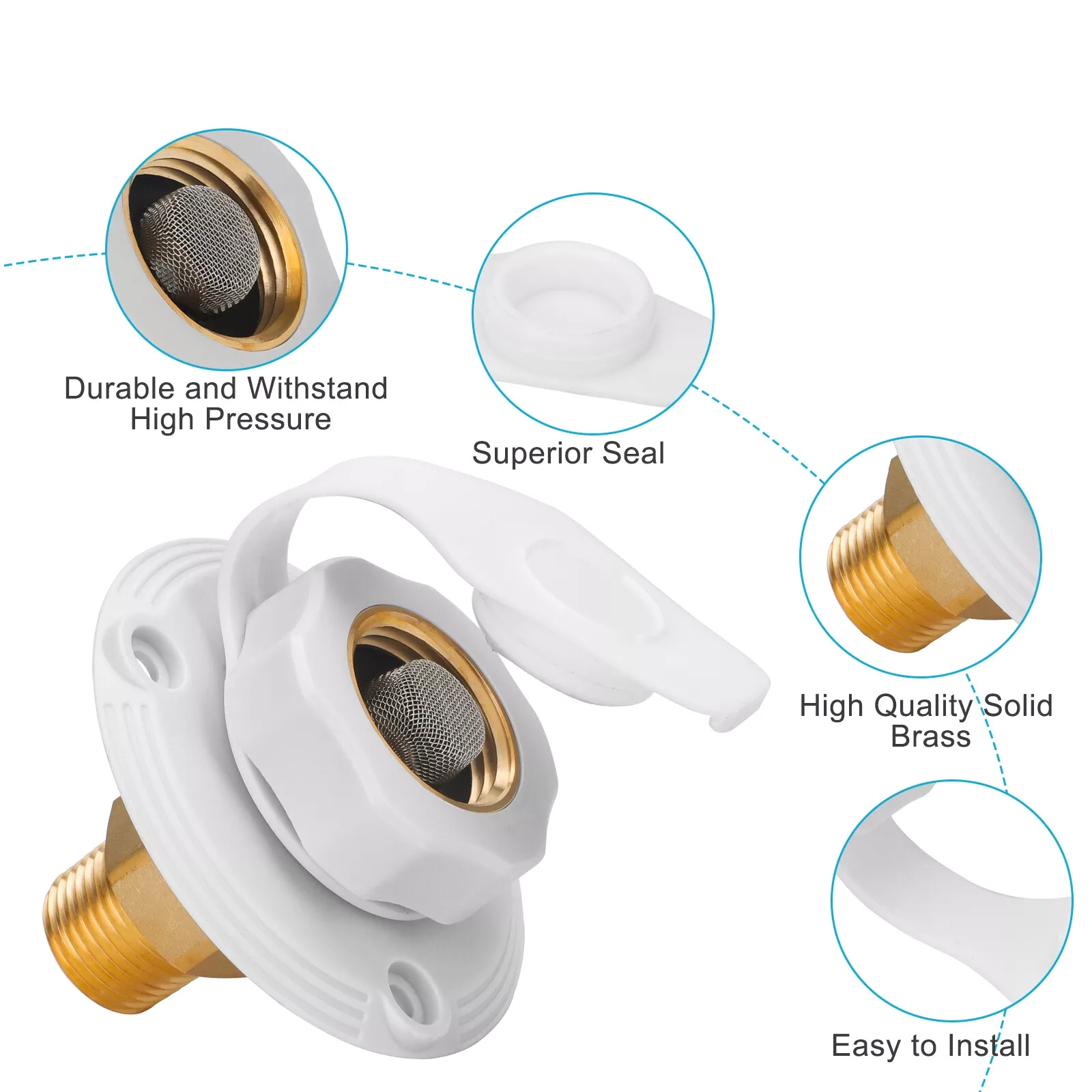 Reliable Material: Made with a brass threaded tube and premium plastic cap, RV city water inlet is sturdy, reliable, and suitable for outdoor use, offering long-term durability.