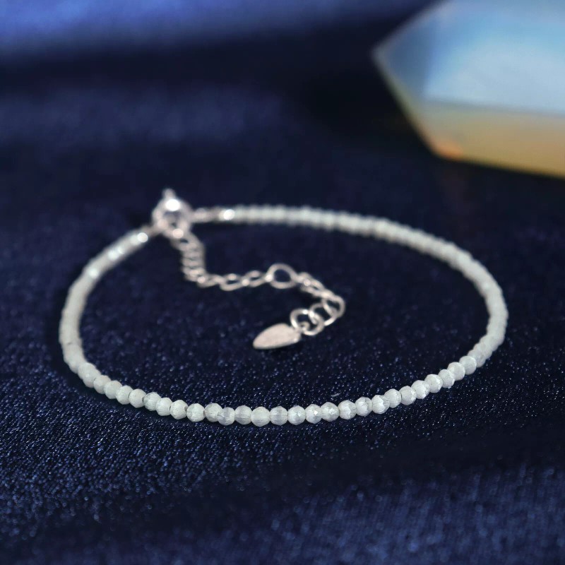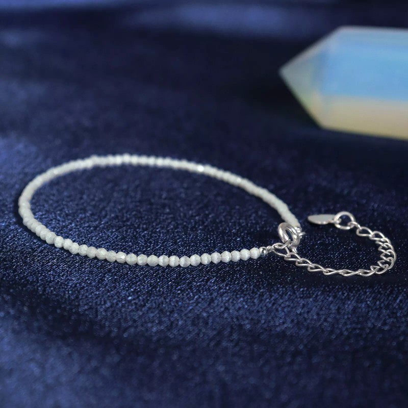 Unbranded White Selenite Crystal Gemstone 2mm Tiny Beads Healing Dainty Bracelet for Women