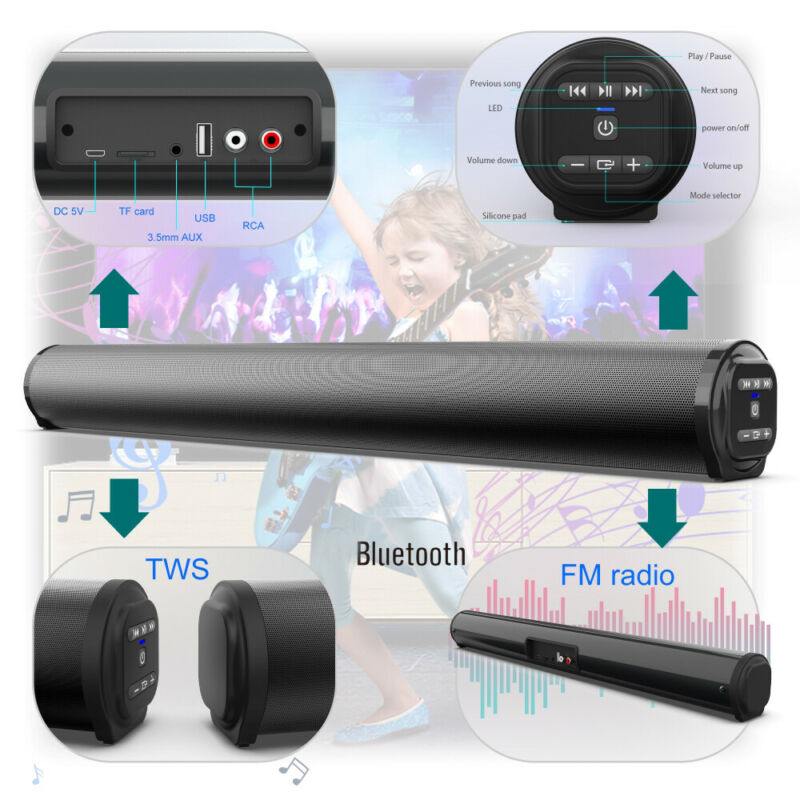 • Support Bluetooth connection, fully compatible with most kinds of Bluetooth devices, wireless playing, do follow your heart.