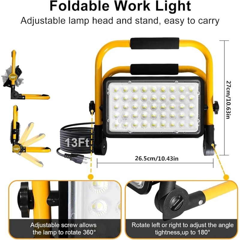 - 【Versatile Applications】Our led work light with stand can be widely used for car repairing, workshop, boat, garage, basement, camping, engineering construction sites, factories, interior renovation and other places that need lighting