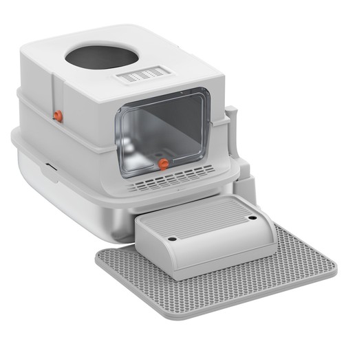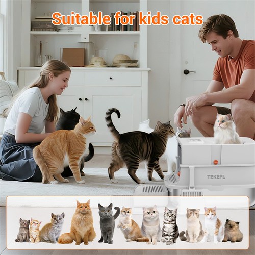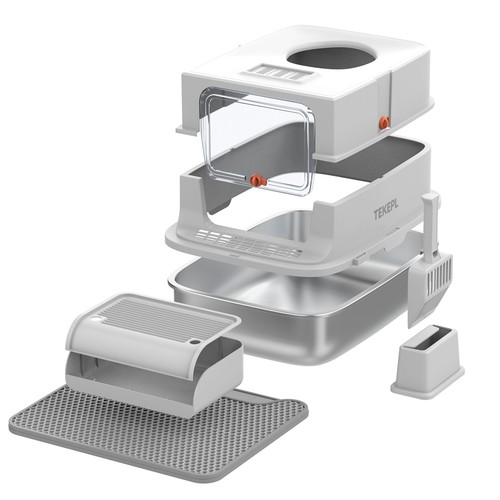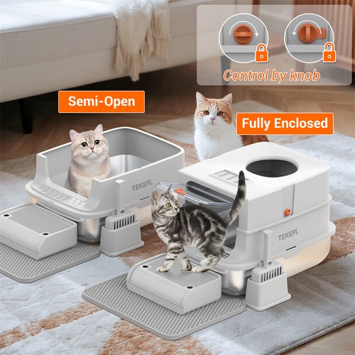 🐱 Easy to Clean & Mess-Free Smooth, non-stick stainless steel surface of this metal litter box with lid and covered stainless steel litter box makes cleaning effortless. High-sided walls, the Elevated Step Board, and the Anti-Tracking Mat minimize litter scatter, keeping your home clean and tidy.ypes of cat litter