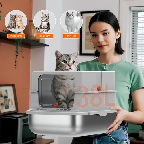 Unbranded XXL Stainless Steel Cat Litter Box with Lid Enclosed High Sided Extra Litter Box