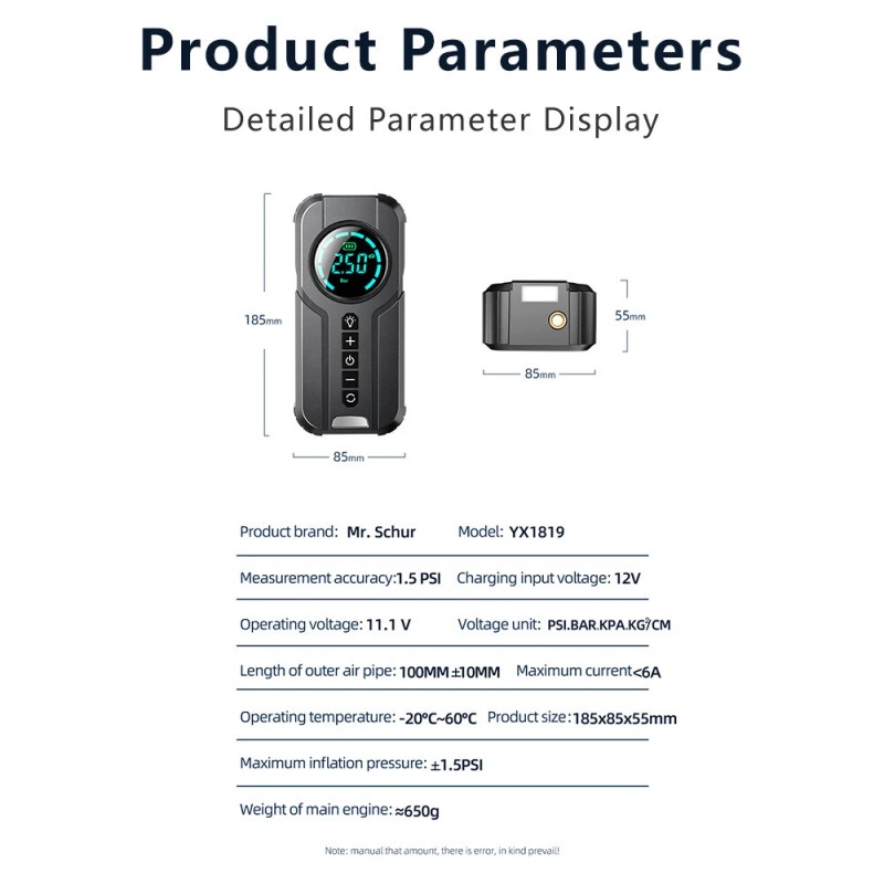 - Inflator Size: 18*8*5.2cm/7.1*3.15*2in