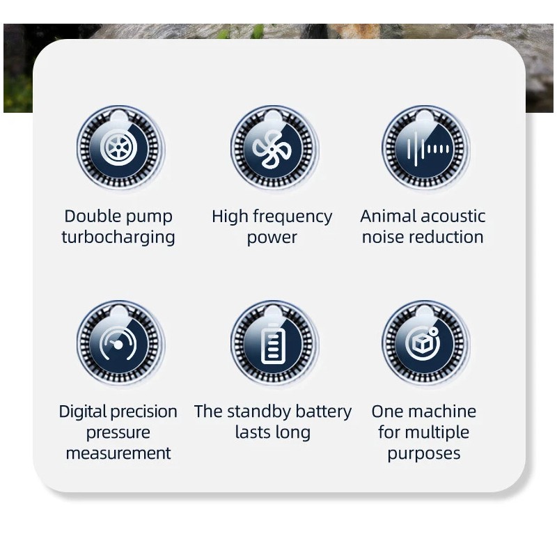 What people may not realize is that tire inflators can save lives. If you are trapped in a snowstorm and have a flat tire and can't ask for help, this portable air compressor can inflate the tire and get you back on the road in a few minutes. You can manually set the pressure value between 5-150PSI, and automatically stop working after reaching the set value. It is not only suitable for inflating automobile tires, but also suitable for bicycles, motorcycles, swimming pools, balls and so on.