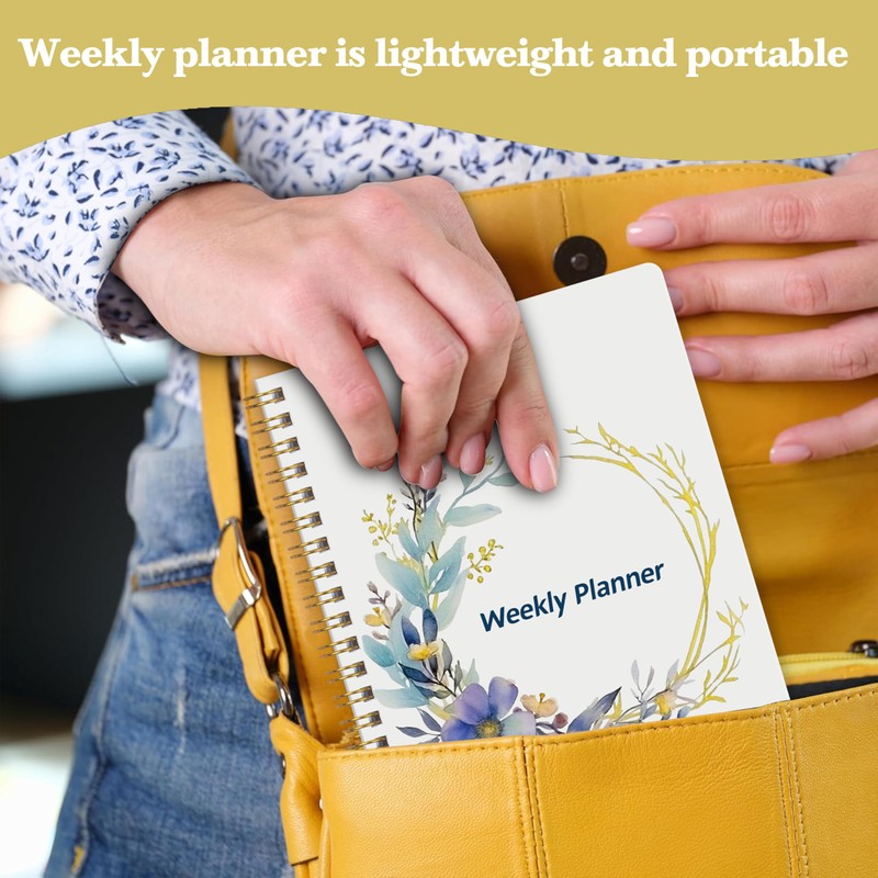 Undated Weekly Planner- Weekly Goals Notebook, A5 To Do List Planner, Habit Tracker Journal with Spiral Binding(Flower-2)