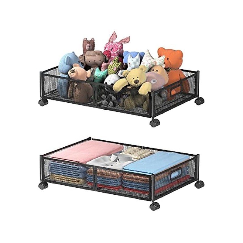 Under Bed Storage Containers, Shoe Storage With Wheels, Foldable Bedroom Storage Organization with Handles, Under Bed Storage Bins Drawer For Clothes, Blankets And Shoes, Bedding (2 Pack, Black)
