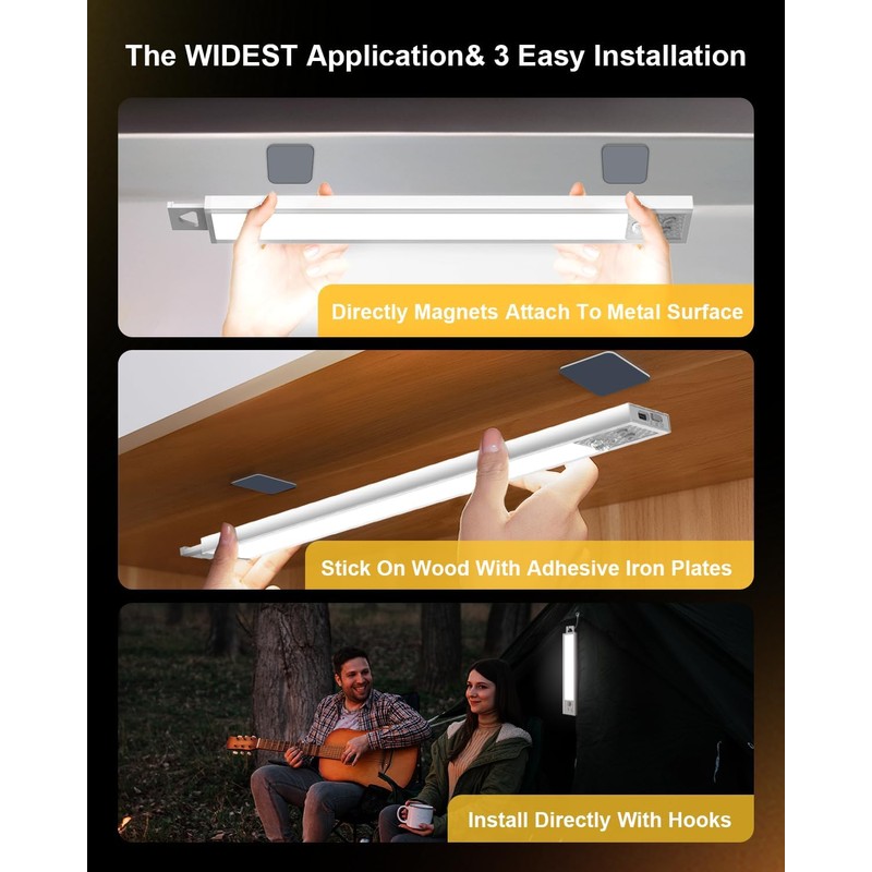 - 3 installation modes: There are three installation modes for you to choose from: built-in magnet, attached tape, and hook. Easy to install, disassemble, and transfer without damaging your furniture. It is also easy to carry and very suitable for wardrobes, kitchen sinks, bedrooms, bookshelves, corridors, garages, and camping tents. Provide convenience for places in your life that require lighting