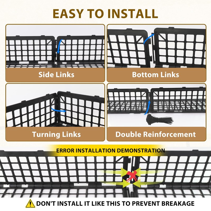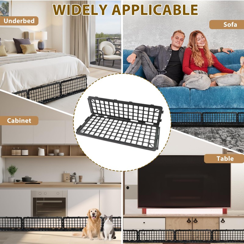 - 【Multiple uses】assemble it under furniture like beds and sofas to keep pets from crawling underneath; or reconfigure it into other shapes and use it in additional settings—such as a shelf barrier to neatly store kitchen tools and more.