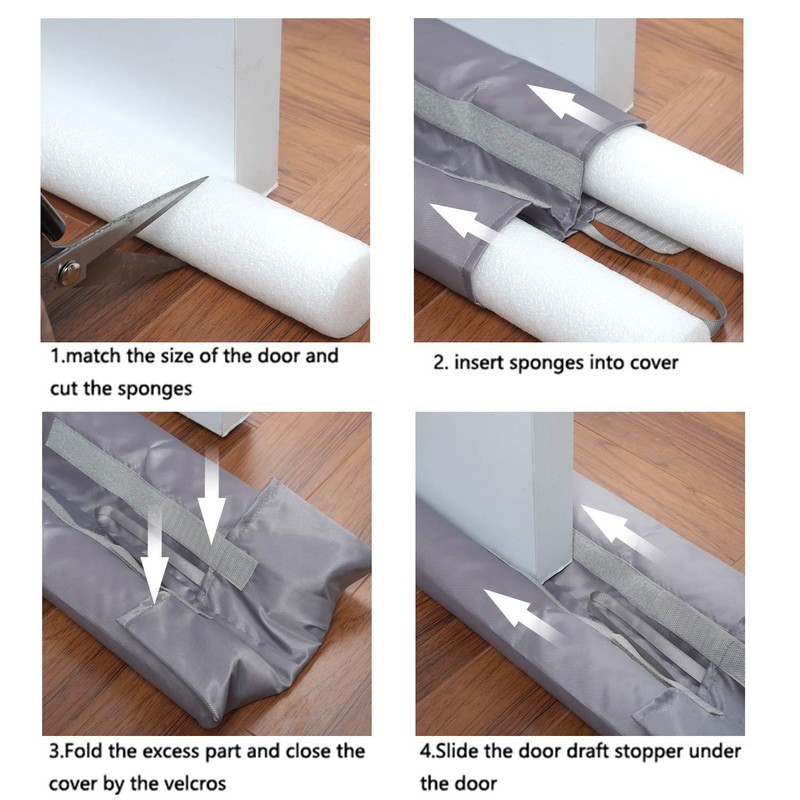 - EAST TO INSTALL:The adjustable door draft stopper is easy to install. It just cost a few minutes to fast installation according the instruction.