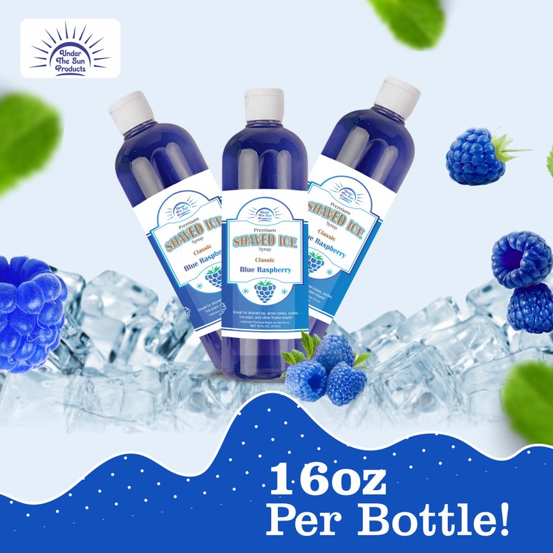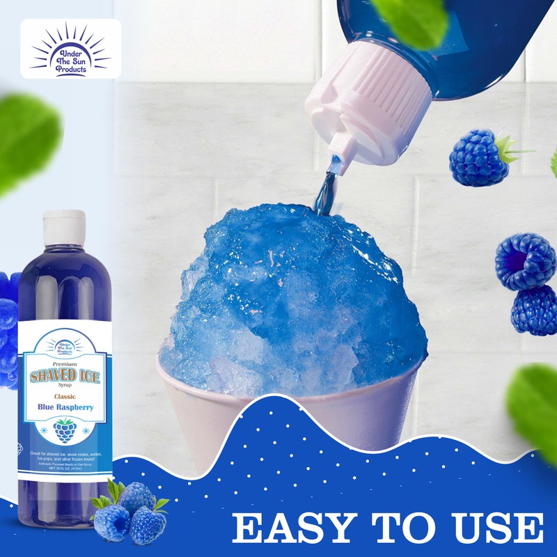 Under the Sun Products - 16oz Bottle of Snow Cone Syrup - Blue Raspberry Flavor Get ready to add a burst of delicious, tangy sweetness to your snow cones, shaved ice, or any frozen treat with Under the Sun Products Blue Raspberry Snow Cone Syrup. This 16oz bottle brings the perfect balance of tart and sweet, making it a must-have for your next summer party, family gathering, or fun day in the sun! Enjoy the perfect touch of sweetness all summer long with Under the Sun Products Blue Raspberry Snow Cone Syrup! Ideal for family events, parties, or just a simple treat to cool off on a hot day.