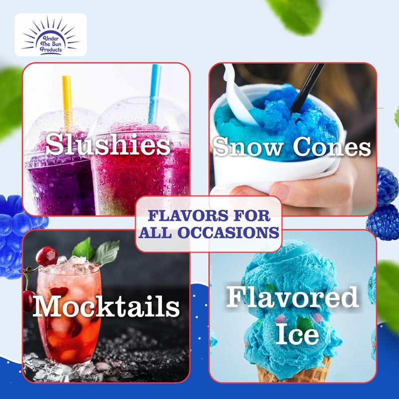 • Flavorful Blue Raspberry: A vibrant, sweet, and tangy blue raspberry flavor that adds the perfect punch to your snow cones or shaved ice.