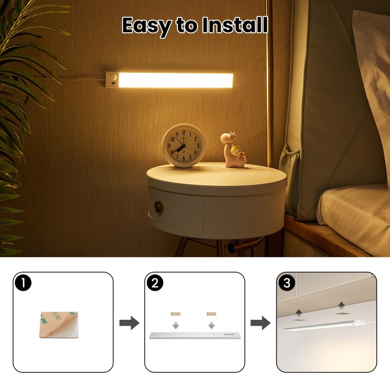 • Night motion sensor: compared to other cabinet lights, our dimmable LED under-unit light has more advantages, it adds a night motion sensor function. In darker environments, the cabinet lights automatically light up when motion is detected, the cabinet lights automatically turn off after 30-35 seconds without detecting movement.