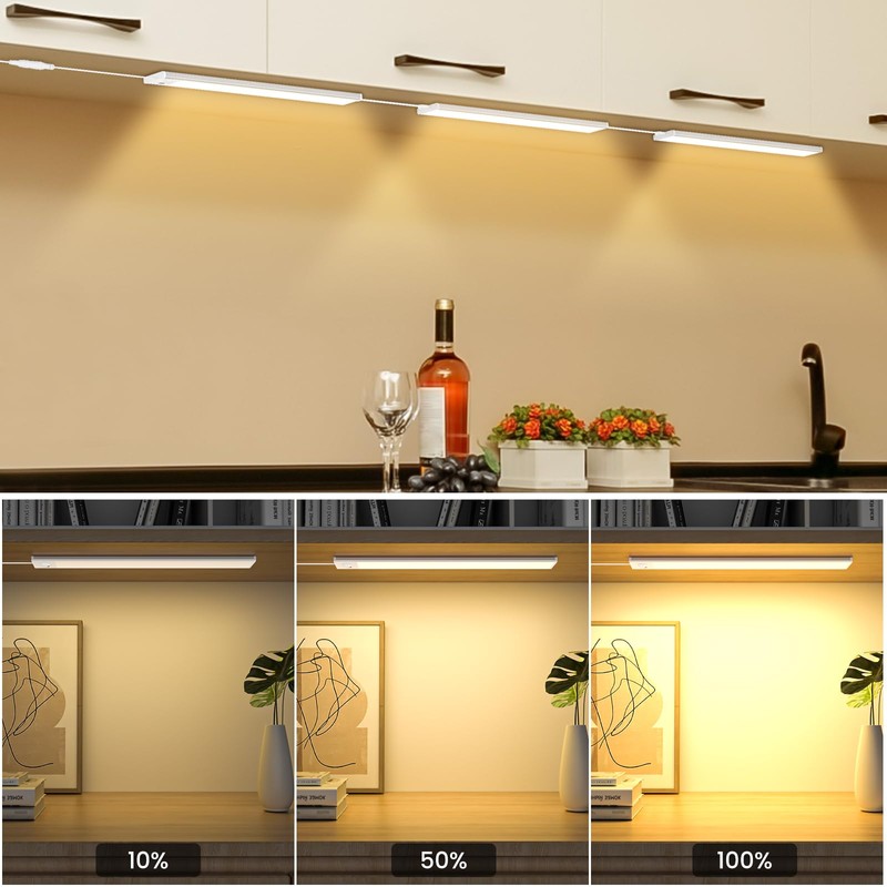 • Dimmable and memory function: move your hand under the sensor to adjust the brightness. to adjust the brightness of the lights according to your needs. Whether you need a soft ambient light or bright lighting, our cabinet lighting offers the desired light. You do not have to adjust the brightness every time, LED kitchen lighting base remembers your previous brightness setting.