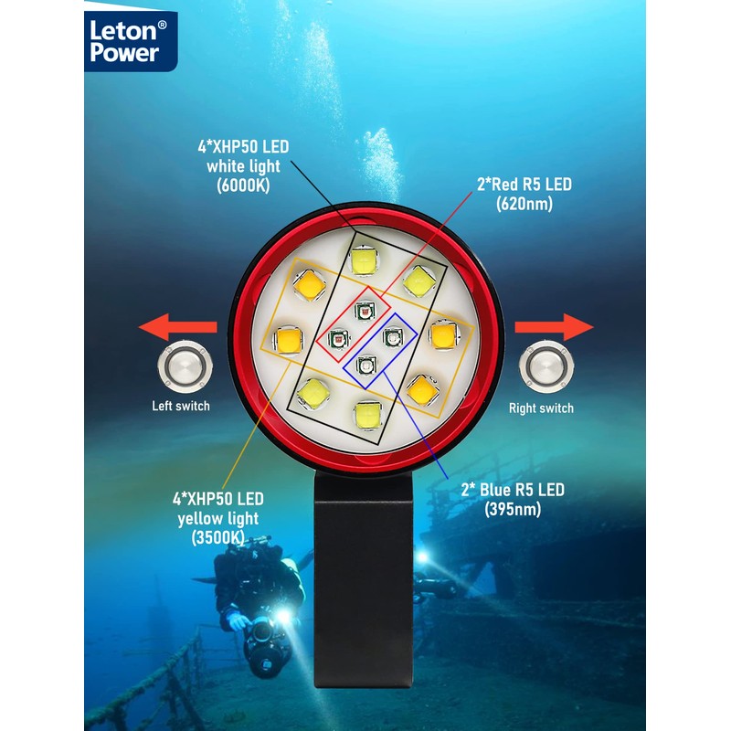 Underwater Light Diving, LetonPower TS Pro 13000Lumens Underwater 120m Diving Light, Scuba Light, Type-C Charging Underwater Camera Light,Diving Light Wide Angle