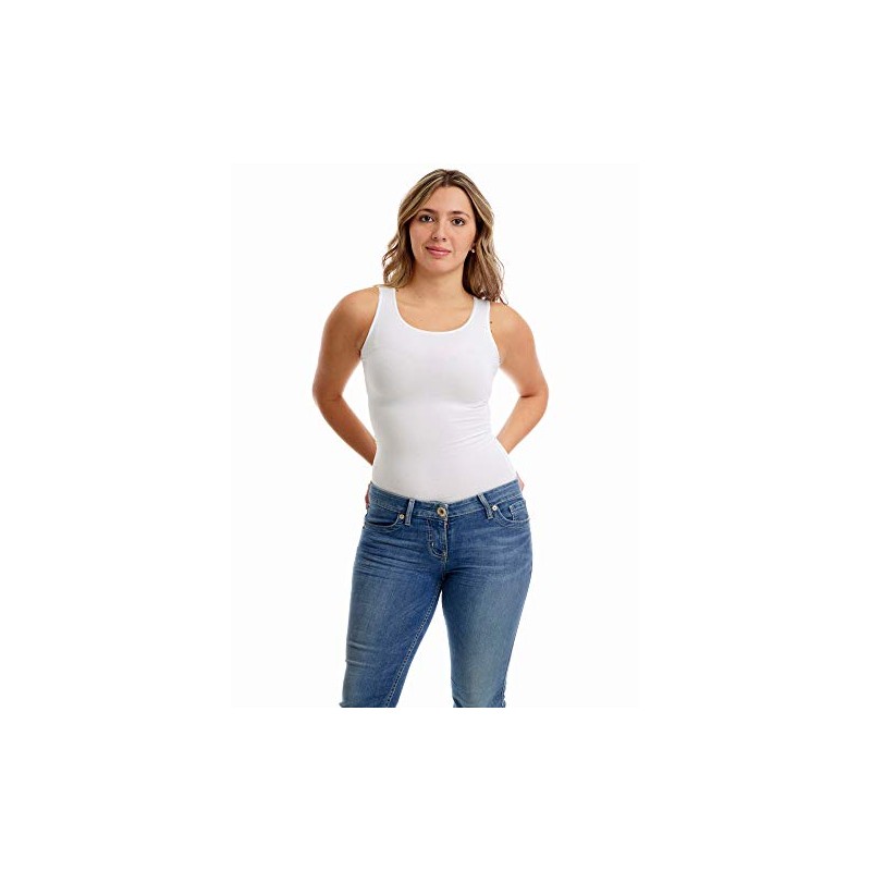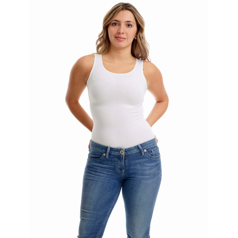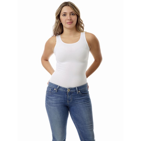 Underworks Women's Ultra Light Cotton Spandex Compression Tank, 2X, White