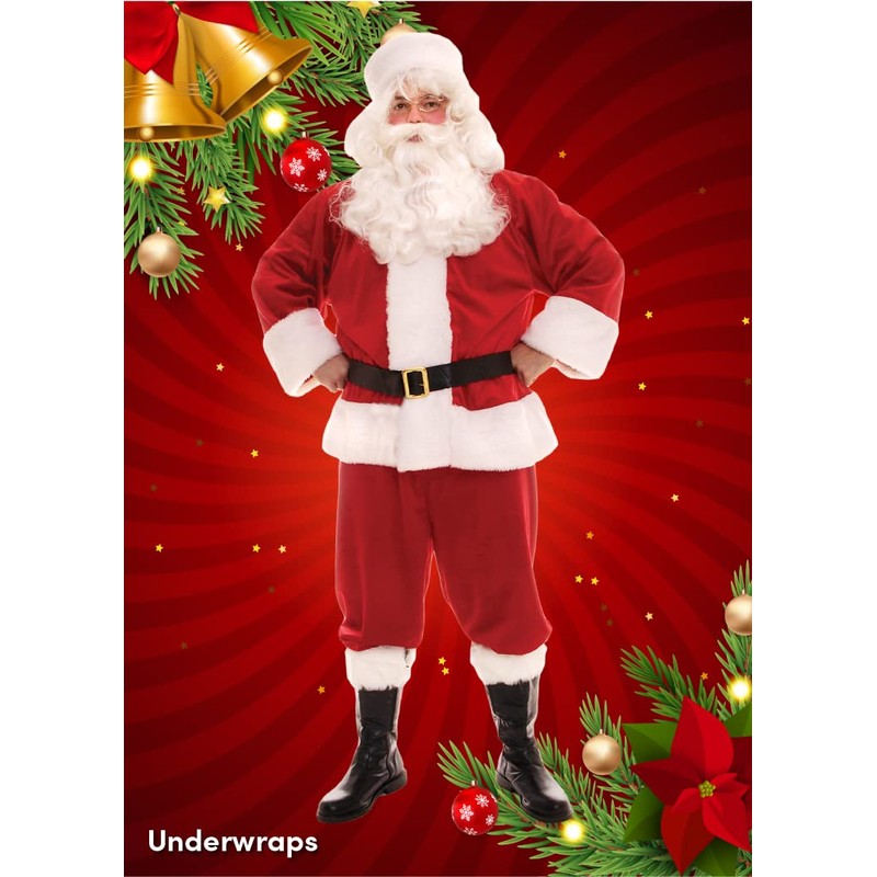 Underwraps Men's Plush Santa, Red/White/Black, One Size