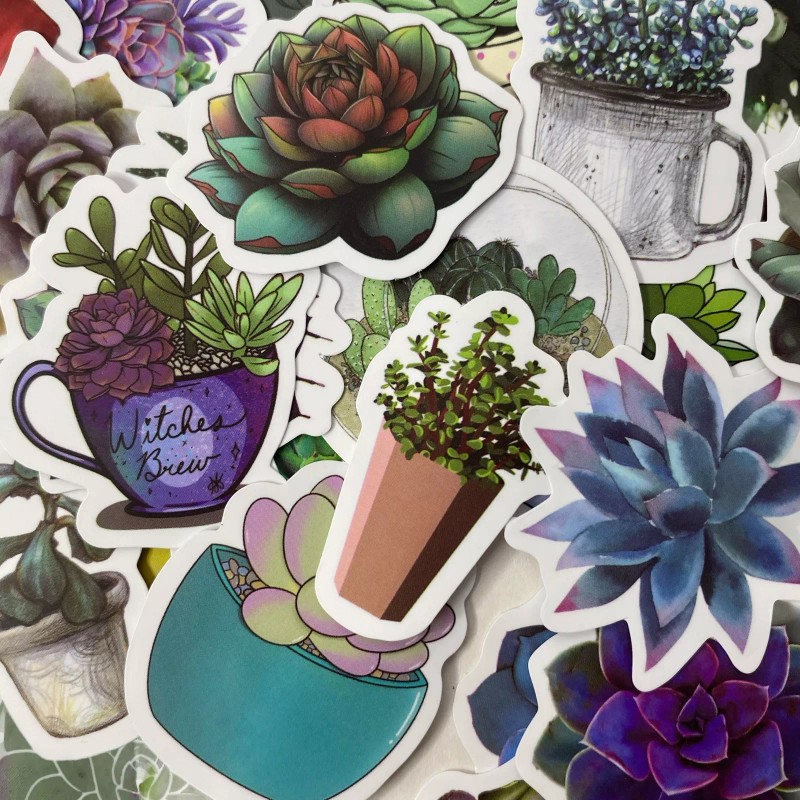 Undisclosed 100pc 1.5" Succulent Plant Cactus Stickers for Notebooks Water Bottles and More