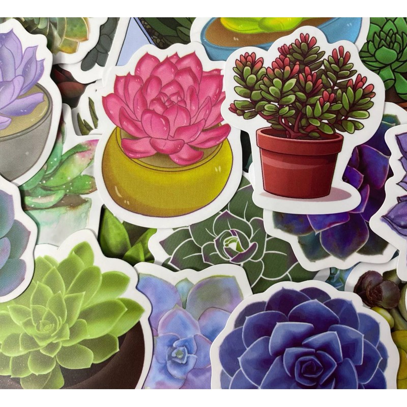 Brighten up your life with these 100pc 1.5" Succulent Plant Matte Cactus Stickers for Notebooks Water Bottles and More! Perfect for personalizing your favorite items, these vibrant stickers are designed to add a pop of fun wherever you stick them.