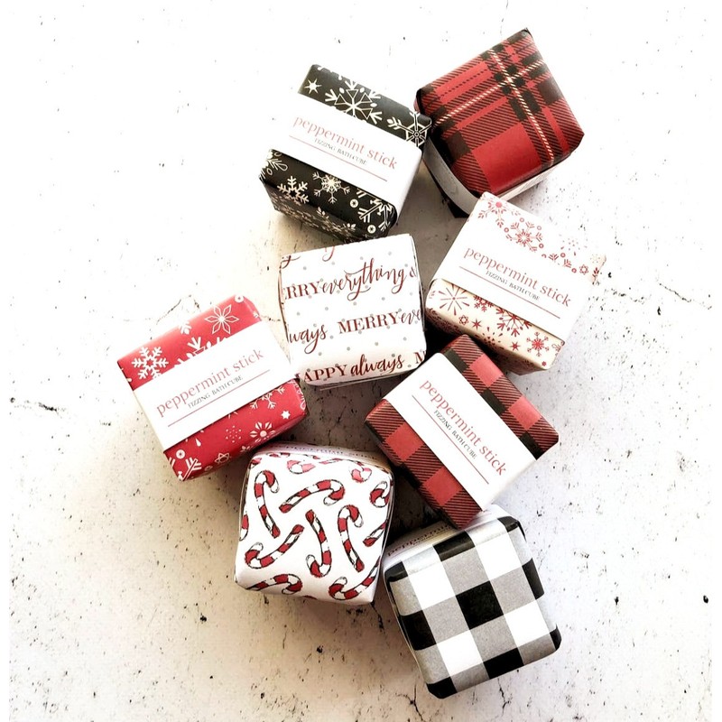 Blast yourself with a mintastic fizzing bath cube.  Help clear sinuses and ease achy muscles with this large handmade and wrapped bath cube.