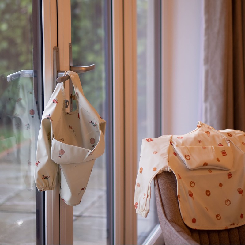 ÜneeQbaby Ökotex Waterproof Long Sleeve Bibs for Babies and Toddlers, Pack of 2, multicoloured